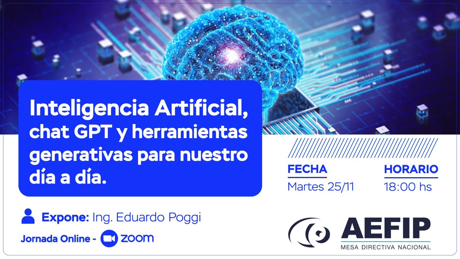 La charla es por zoom así podes acceder desde cualquier punto del país, la dictara el Ing. Eduardo Poggi, el Martes 25/11 a las 18 hs. ¡Te esperamos!