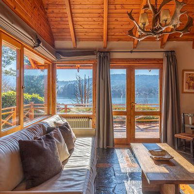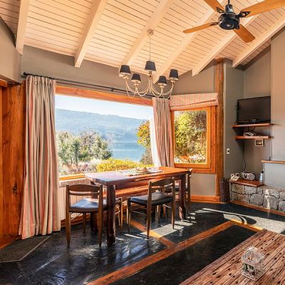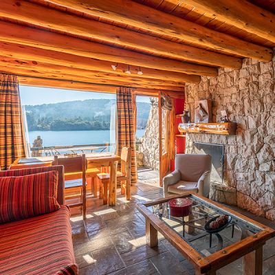 La cabaña Suite ofrece un gran ambiente integrado con increíbles vistas al lago.