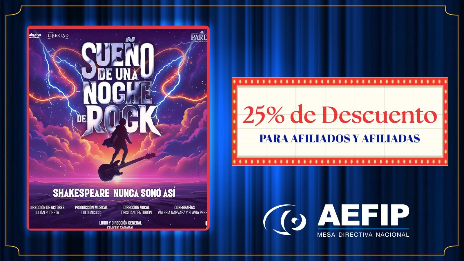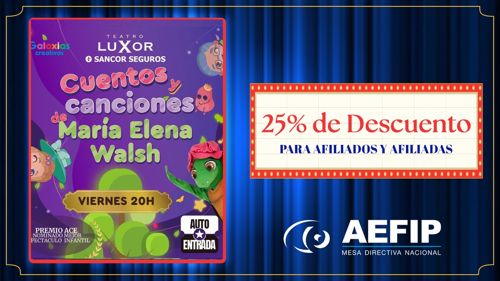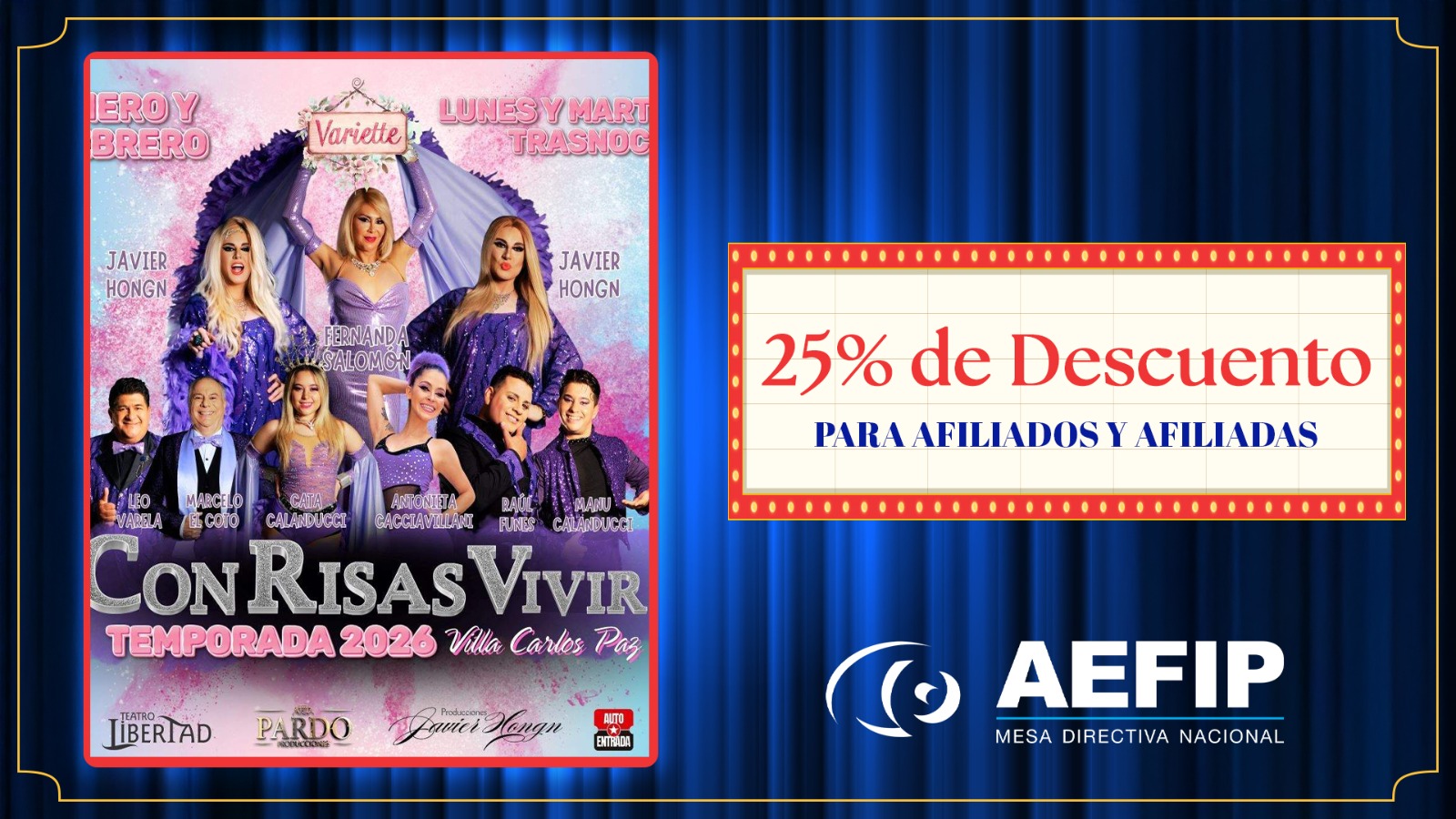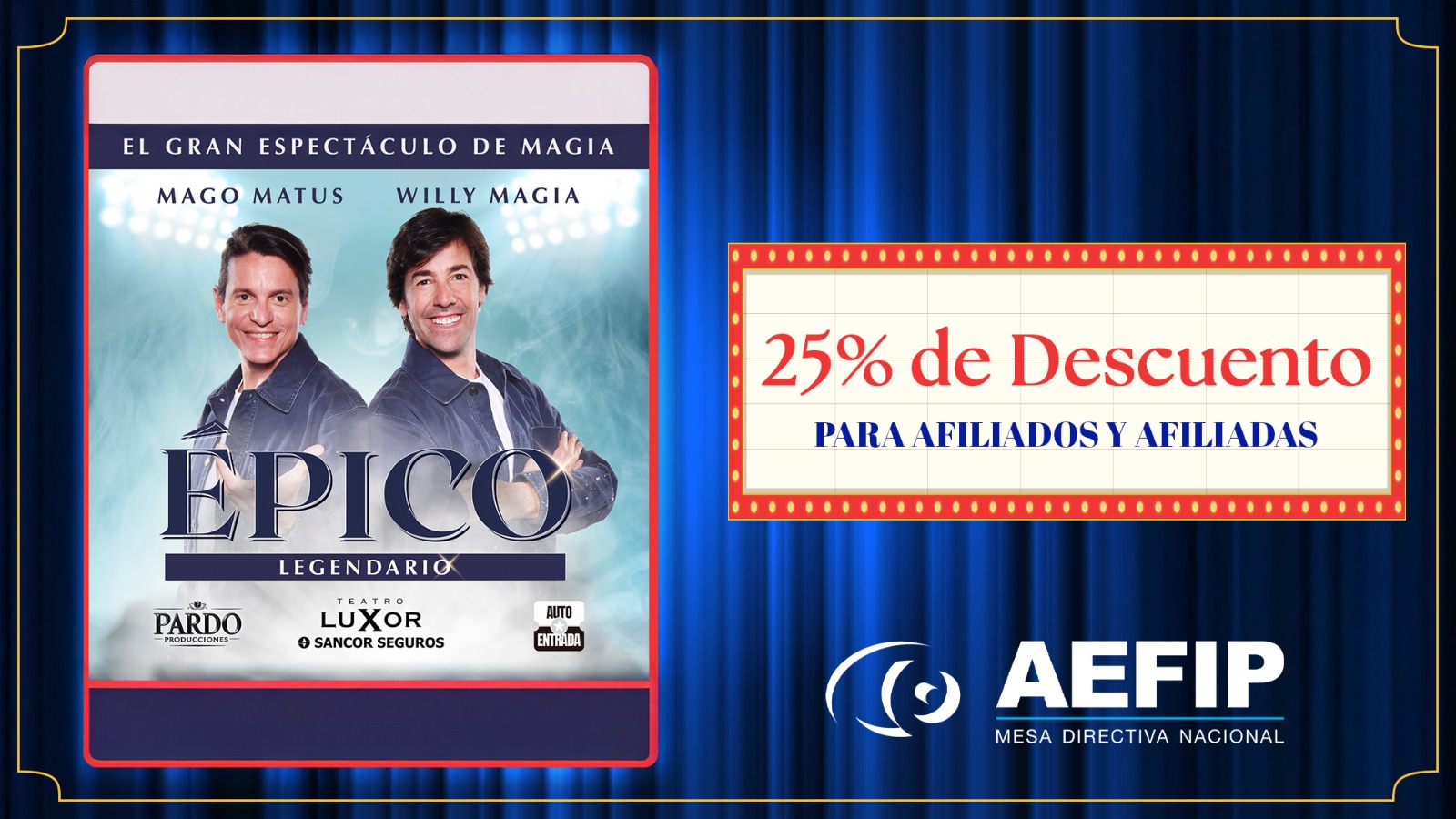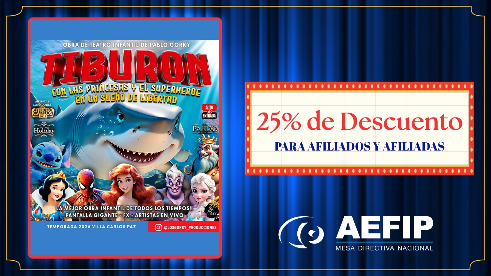 Por ser afiliada o afiliado a AEFIP tenes un 20% de DESCUENTO; haciéndose extensivo el mismo para el festejo de cumpleaños. No se acumulan los descuentos, beneficios y promociones que los locales otorguen al público en general.