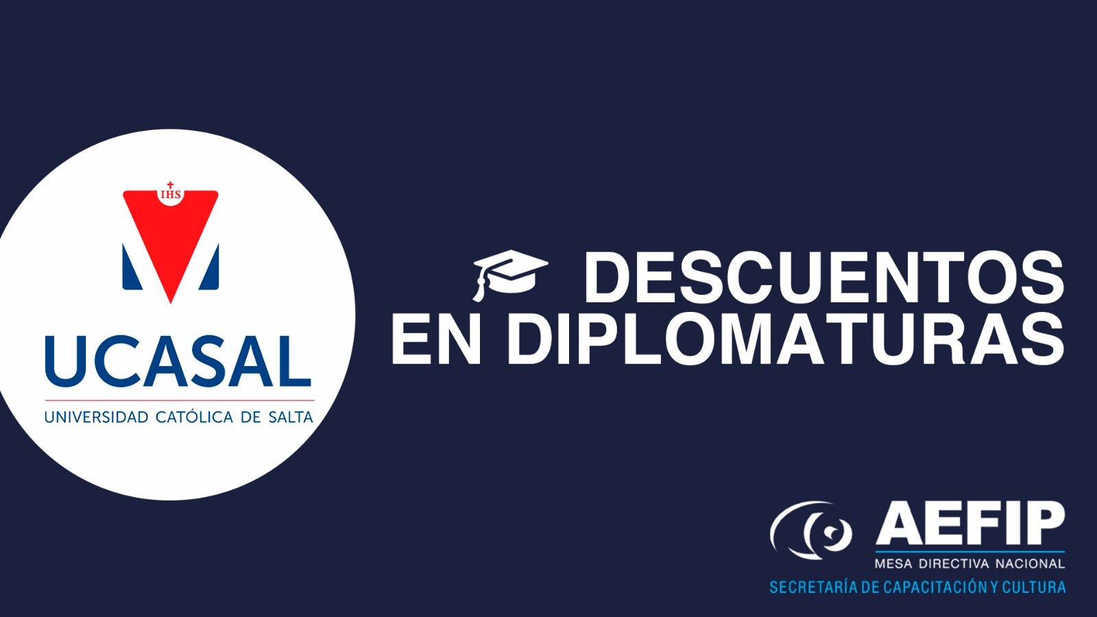 La Mesa Directiva Nacional de AEFIP firmo un nuevo convenio con la prestigiosa “Universidad Católica de Salta – UCASAL” acercándole de esta manera descuentos a los afiliados y afiliadas que quieran concurrir a dicha Institución con el objetivo de formarse y capacitarse como profesionales.