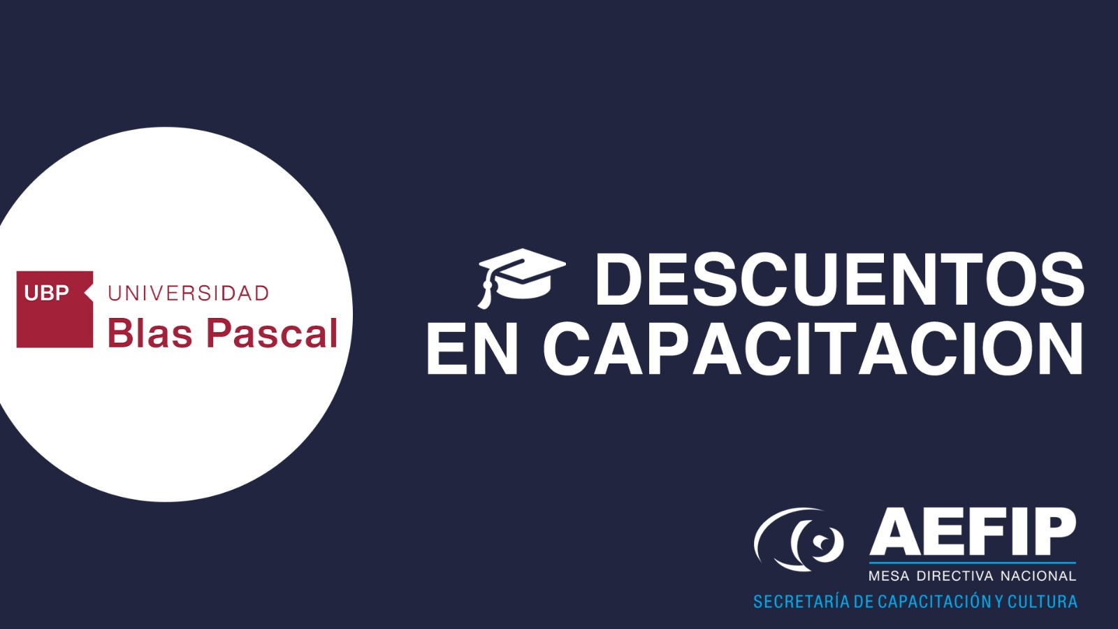 La Mesa Directiva Nacional de AEFIP firmo un nuevo convenio con la reconocida “Universidad Blas Pascal” acercándole de esta manera descuentos a los afiliados, afiliadas y su grupo familiar que quieran concurrir a dicha Institución con el objetivo de formarse y capacitarse como profesionales.