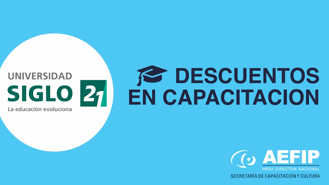 La Mesa Directiva Nacional de AEFIP renovó el convenio con la reconocida “Universidad Siglo 21” acercándole de esta manera descuentos a los afiliados, afiliadas y su grupo familiar directo que quieran concurrir a dicha Institución con el objetivo de formarse y capacitarse como profesionales.
