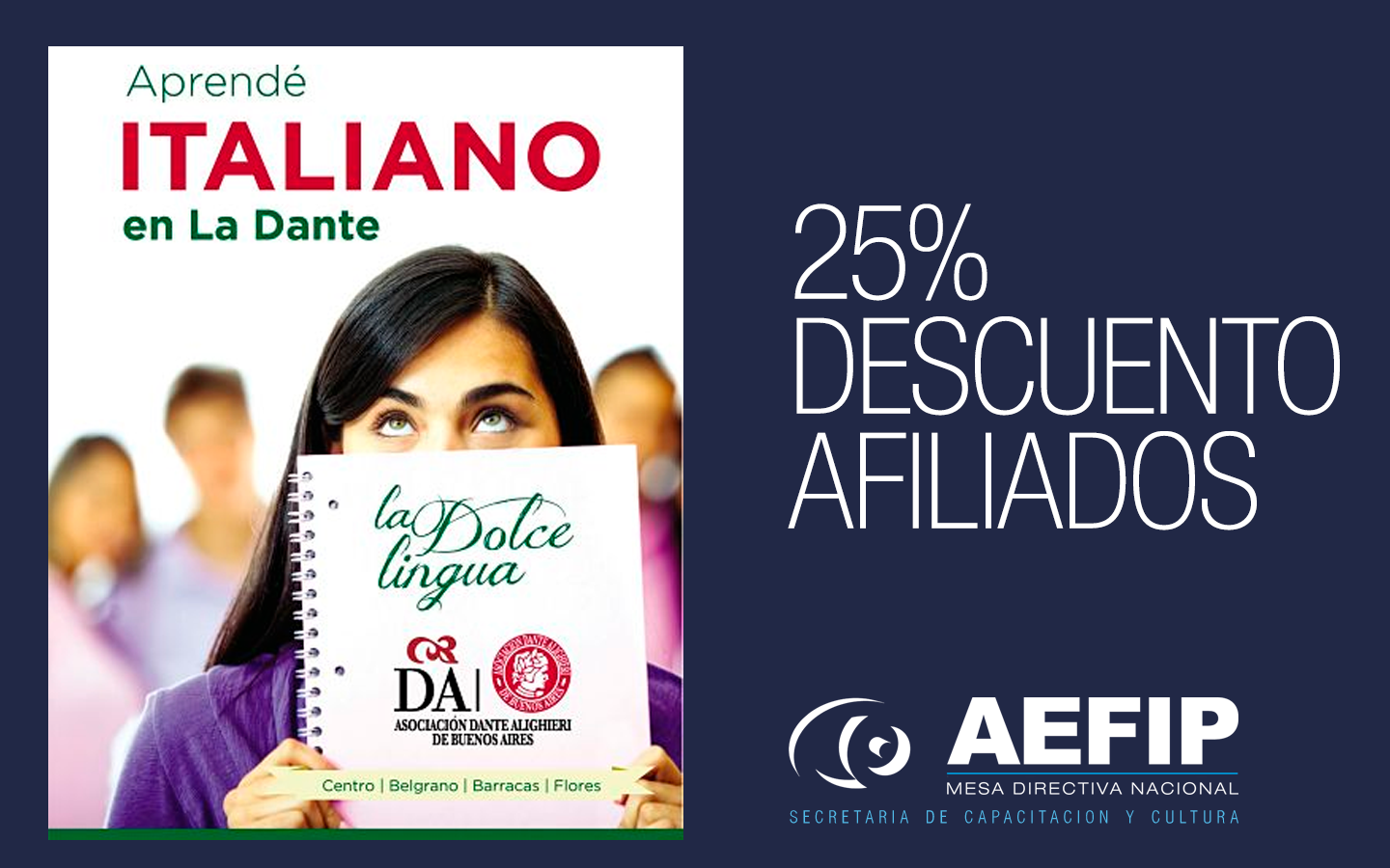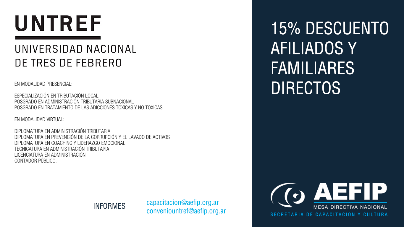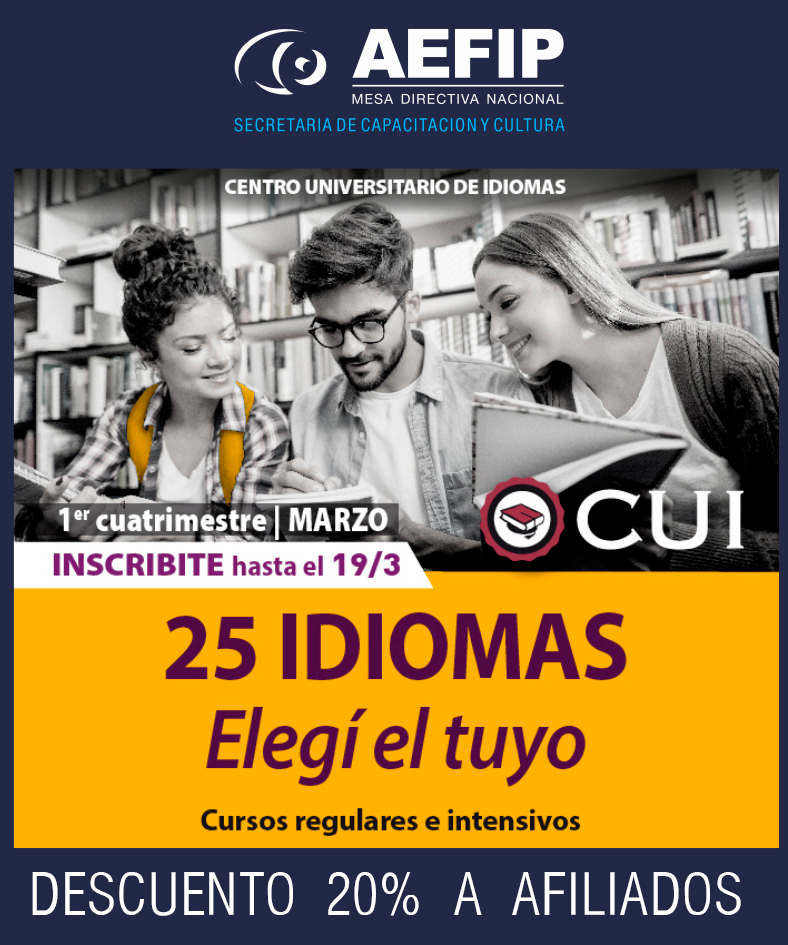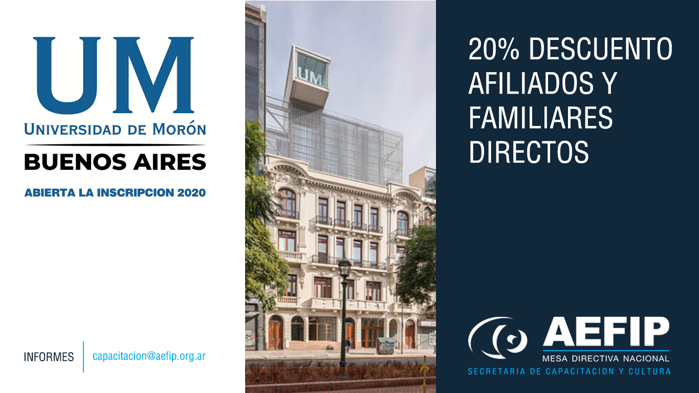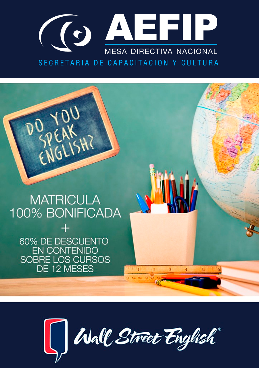 15% de descuento afiliados AEFIP y grupo familiar directo, sobre el valor de la cuota mensual