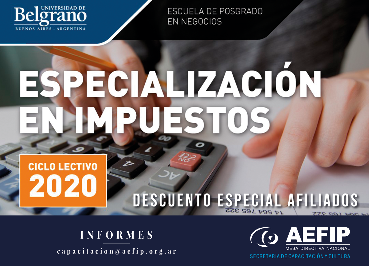 Nuevo convenio con la Universidad de Belgrano que permite a los afiliados, cónyuges, hijos e hijas acceder al descuento del 20% sobre las cuotas para la Especialización en Impuestos 2020.