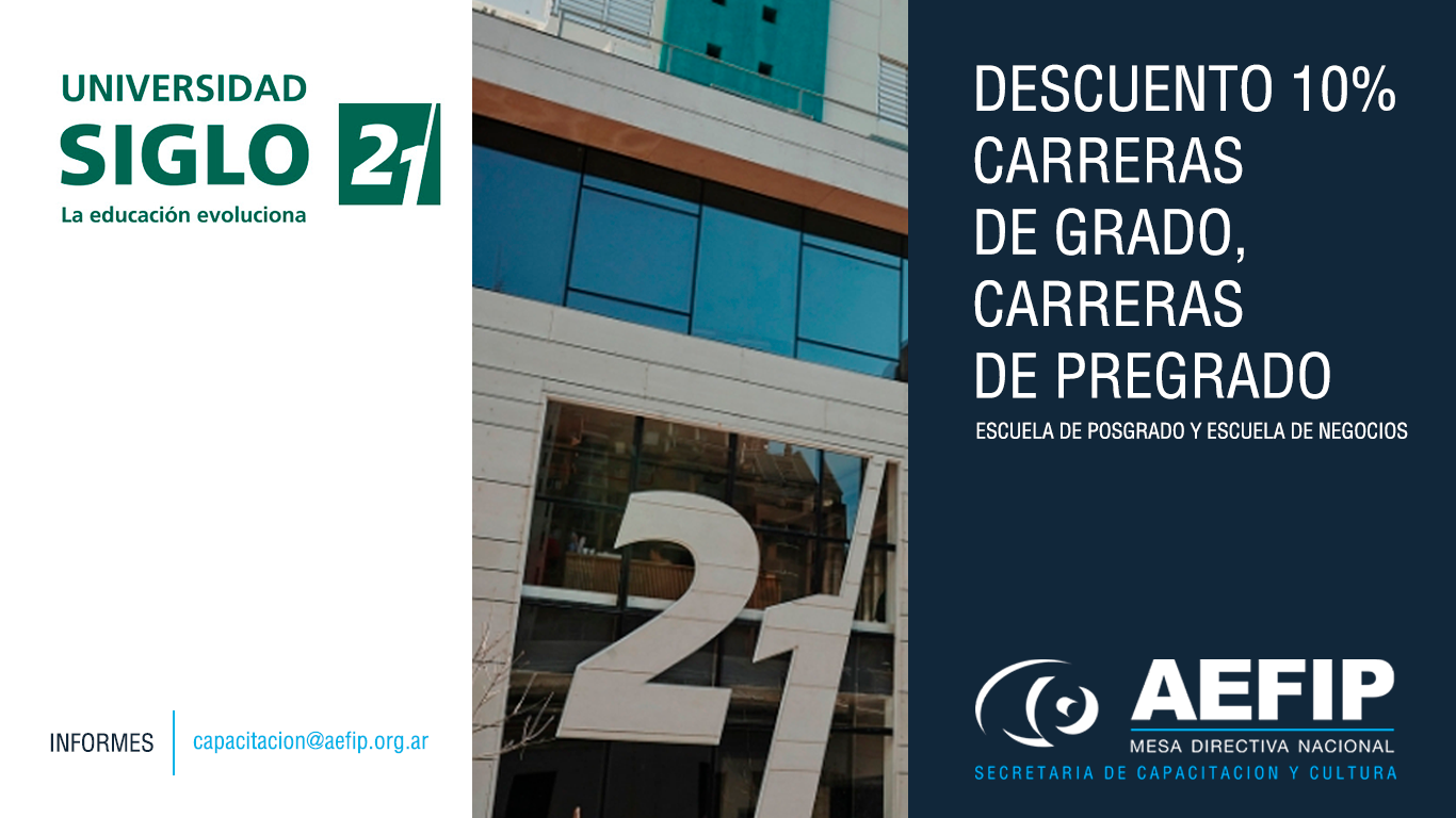 AEFIP suscribió convenio de descuentos para afiliados y familiares directos con la Universidad Siglo 21 (*).
