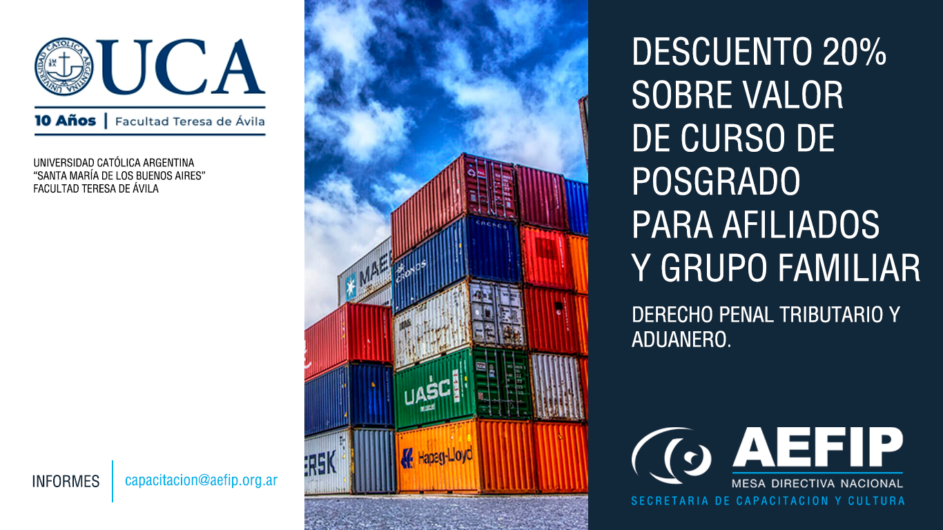 Beneficio del 20% de descuento para afiliados, afiliadas y/o su grupo familiar directo en el curso de Derecho Penal Tributario y Aduanero. Cursada online de 130 horas. Inicia el 31/07. Se cursa Viernes de 16 a 20 hs. y Sábados de 9 a 13 hs., de Julio a Noviembre.