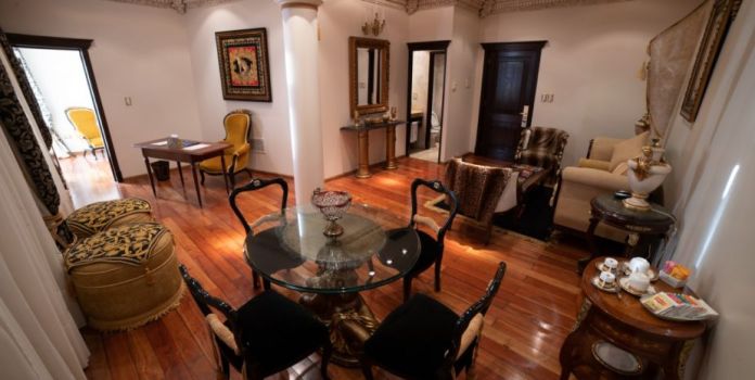 Con una exquisita decoración europea al mejor estilo Versace nos deslumbra la Suite Sol que cuenta con un amplio living comedor, toilette de invitados, escritorio de trabajo, camas somier, vestidor, jacuzzi, baño con antebaño, Tv plasma, y la maravillosa vista a la ciudad de San Salvador de Jujuy.