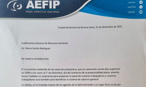De acuerdo a lo manifestado en nuestro comunicado de fecha 28 de diciembre, exhibimos la nota presentada el 21 de diciembre ante la Subdirección de Recursos Humanos solicitando modalidad de trabajo m…