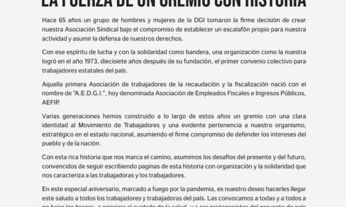 Nuestro día, el día del trabajador y trabajadora fiscal es el recuerdo de que los derechos son el fruto de generaciones de lucha, generaciones de hombres y mujeres organizados en AEFIP que a lo largo…