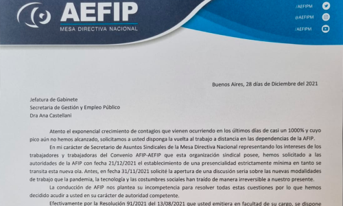 De acuerdo a lo manifestado en nuestro comunicado de fecha 28 de diciembre, exhibimos la nota presentada ante la Secretaría de gestión y Empleo Público solicitando modalidad de trabajo mixto.
