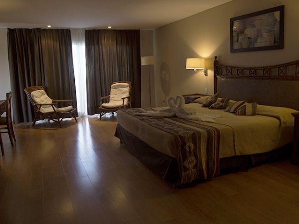 la habitación tiene con una superficie de 35m2. Cuenta con hidromasaje individual, aire acondicionado, LCD 32´, frigobar, cofre de seguridad y cochera.