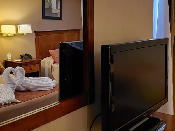 Con vista al rio y deck, la habitación tiene una superficie de 40m2. Cuenta con aire acondicionado, LCD 32´, frigobar, cofre de seguridad y cochera.