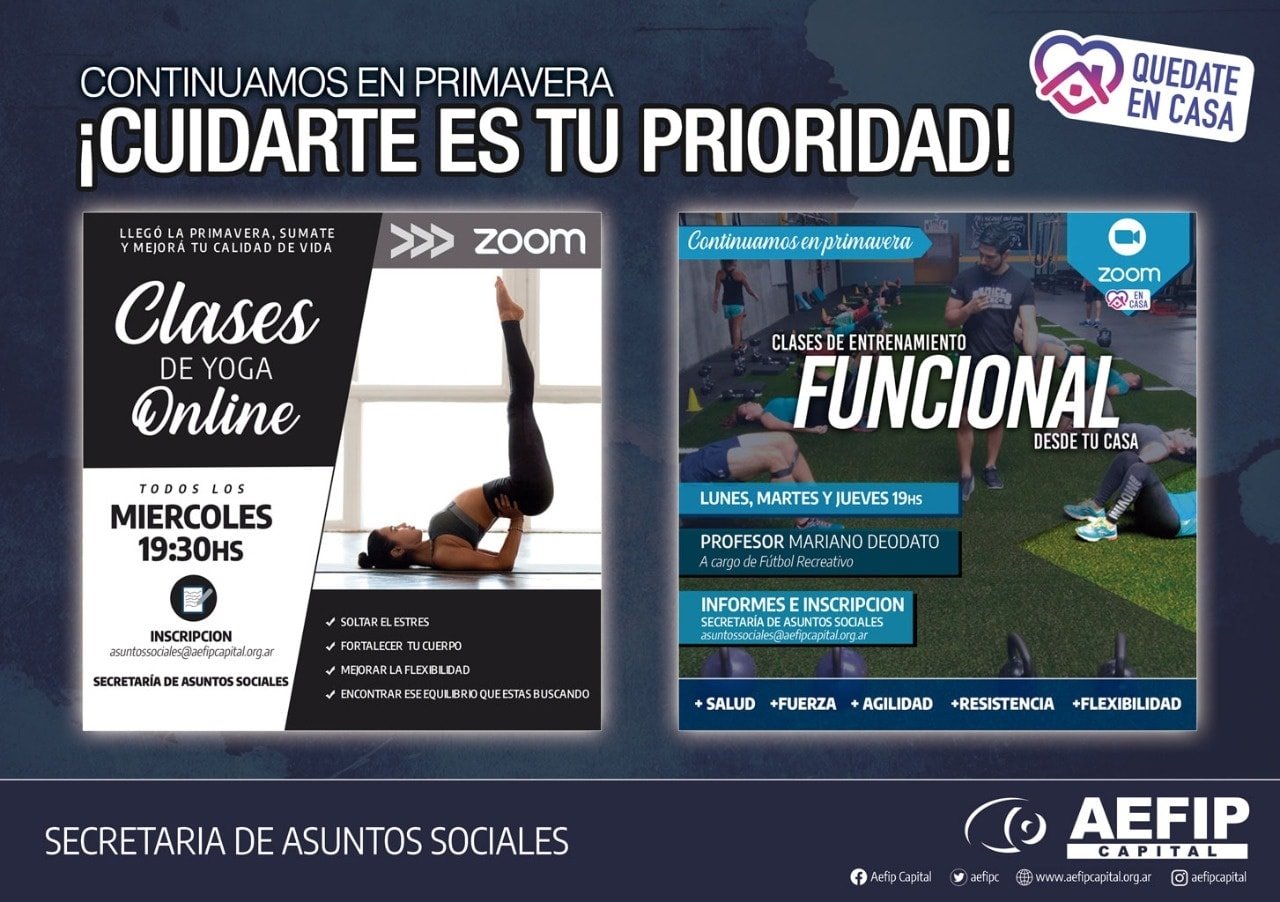 Creemos que es indispensable atravesar esta situación manteniéndonos activos y saludables y por eso desde AEFIP Capital nos ocupamos de poder acercarle a nuestras afiliadas/os propuestas que los ayuden en ese sentido. Porque al igual que nuestra MDN entendemos que la salud de los y las trabajadoras es primordial para un desarrollo personal pleno en ejercicio de derechos.