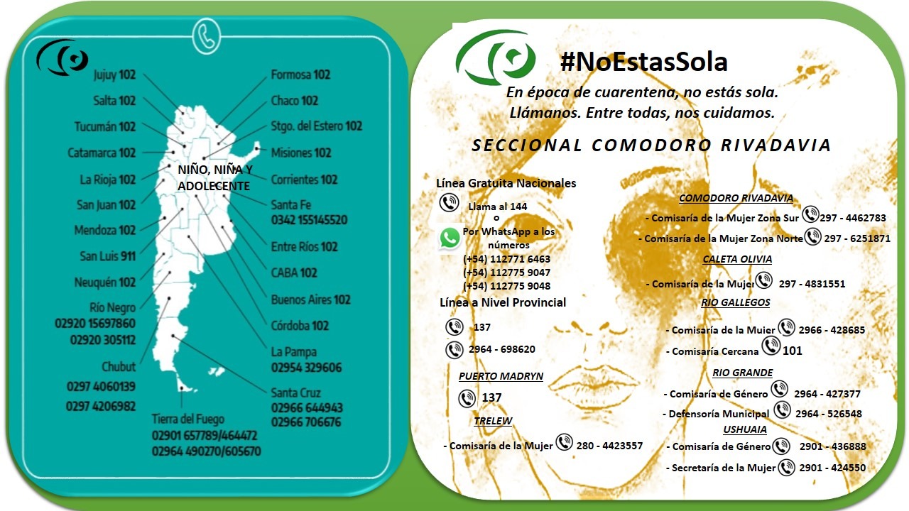 Escrito por admin el 31 Marzo 2020. Publicado en Comodoro Rivadavia. NO ESTAS SOLA Visto: 86 Anterior Siguiente