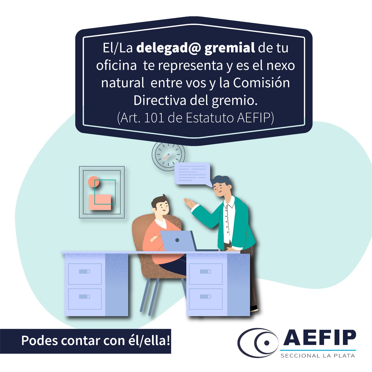 Para esta Comisión Directiva la información es una herramienta central en el vínculo con nuestros compañeros y compañeras. Y en esa construcción la función del delegado/a es fundamental en su doble rol de representación: son la voz del Sindicato frente a nuestro compañeros/as y ante la AFIP pero también son la voz de los compañeros/as frente ante esta institución y nuestro gremio.