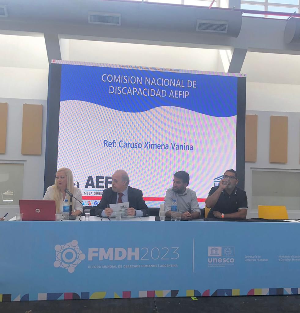 A través de la participación de nuestra compañera Ximena Caruso, representante de la Comisión Nacional de Discapacidad de nuestro sindicato, AEFIP estuvo presente y participo del III Foro Mundial de Derechos Humanos que se desarrollo del 20 al 24 de marzo en nuestro país.