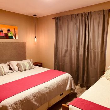 Capacidad: 4 adultos, 45 mts, 2 Ambientes + 1 Baño, 1 Cama Matrimonial + 2 Camas Individuales, Internet Wi-Fi, TV, Escritorio, Caja de Seguridad, Amenities, Secador de Pelo.